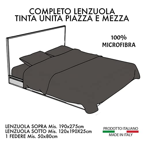 Leonardo Home - completo piazza e mezza da Letto 100% microfibra effetto seta - compreso nel completo 1 lenzuolo - 1 federa per cuscino standard - 1 sotto con angoli - prodotto 100% MADE IN ITALY