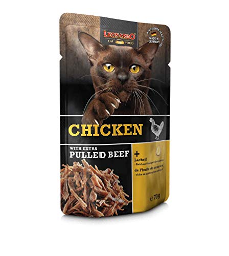 Alimento completo per gatti adulti: LEONARDO Chicken con extra pulled Beef