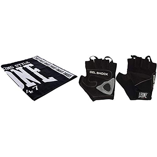 LEONE 1947 Ac914 Asciugamano da Ring, Nero, Taglia Unica & AB712 Guanti Palestra, Nero, M