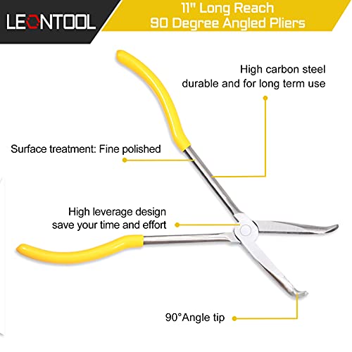 LEONTOOL Pinze a becco piegate a lunga portata da 11 pollici con ganasce seghettate ad angolo di 90 gradi, pinza ad angolo angolato, pinza a lunga portata per spazi ristretti