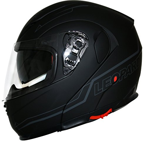 Leopard LEO-838 Casco Apribili e modulari Motocicletta ECE 22-05 Approvato con Doppio Visiera, Matt nero/argento, S (55-56cm)