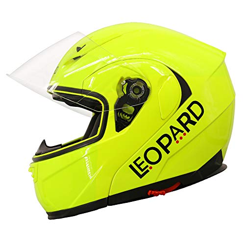 Leopard LEO-838 Casco Apribili e modulari Motocicletta ECE 22-05 Approvato con Doppio Visiera, Giallo, L (59-60cm)