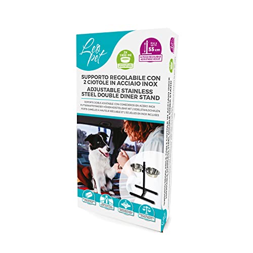 Leopet Supporto Rialzato ad H Regolabile con 2 Ciotole 1800 ml. in Acciaio Inox Altezza 55 cm