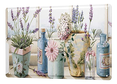 Leotie Targhe Cartello Targa in Metallo Decorazione della Parete Piante Finestra Bottiglie di Fiori di Lavanda