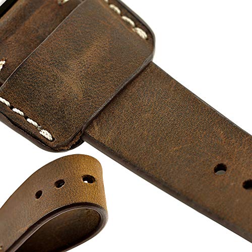 Stile retrò: con finitura in pelle di vitello Crazy Horse in difficoltà e straordinaria cucitura a mano combinata per formare uno stile vintage unico. Il cinturino dell'orologio genererà la sua lucentezza unica nel tempo. Il colore cambierà con la curvatura della band.Questi sono l'essenza di questa banda di orologi.A causa dell'influenza dell'illuminazione interna, non si vede chiaramente il suo vero colore.Solo quando sei all'aperto, puoi vedere chiaramente il suo vero colore e ti piacerà.