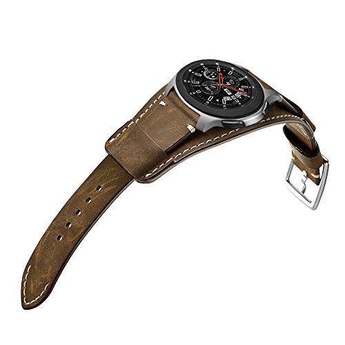 Leotop Compatibile con Samsung Galaxy Watch 46mm/Gear S3 Frontier/Galaxy Watch 3 45mm/Classic Cinturino, 22mm Cinturini in Vera Pelle Bracciale Ricambio Fibbia in Acciaio Inossidabile (22 mm, caffè)