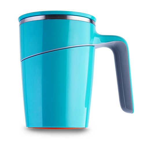 Leox - Smart tazza con coperchio 470 ml tazza termica a doppia parete in acciaio inox Tazza/Bicchiere in plastica per tazzina da caffè con ventosa Mighty Mug tazza con manico Tourquise