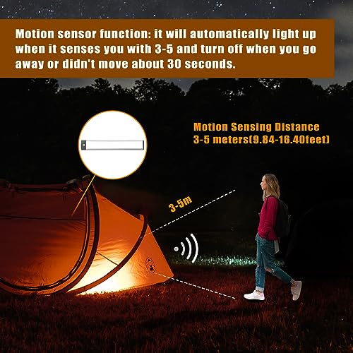 Batteria ricaricabile con maggiore capacità: Batteria ricaricabile ad alta capacità integrata da 2200 mAh, ha una capacità maggiore rispetto ad altre luci a barra luminose a led, ricaricate rapidamente tramite USB. Dopo una ricarica completa, queste luci durano fino a 5 ore in modalità accesa e 1000 volte in modalità sensore di movimento. Non c'è più bisogno di batterie AAA;