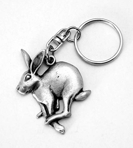 LEPRE CHE CORRE (CONIGLIO) PORTACHIAVI (Portachiavi) IN PELTRO INGLESE di qualità, fatto a mano, (altezza)