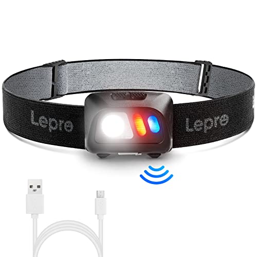 Lepro Lampada da Testa USB Ricaricabile, Torcia LED Frontale con Sensore di Movimento Super Luminoso, Lampada Frontale Impermeabile con 5 Modalità e Rossa di Luce, per Campeggio, Corsa, Jogging