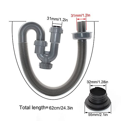 LERANXIN Sifone per Lavello, 62 cm Universale Tubo di Scarico, Sifone Lavabo Realizzato in Morbido Materiale ABS, Adatto per Lavelli di Bagni e Cucine