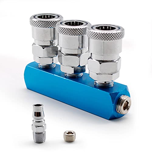 LERAXIN Splitter per Tubo Flessibile Dell'aria a 3 vie, Pressione Aria Attacchi Rapidi di Set, Connettore Pneumatico in Lega di Alluminio, Adatto per Pompe ad Aria e Cilindri