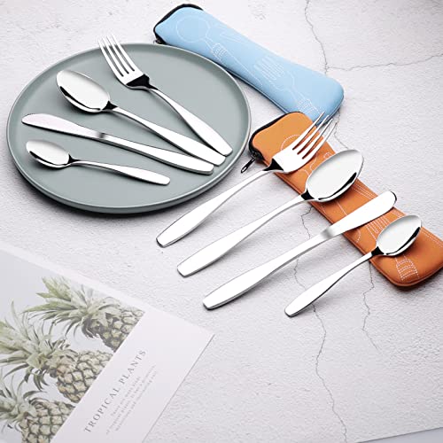 Lesbye Set di 2 Posate da Campeggio da 8 Pezzi, Posate Picnic Acciaio Inox (Blu e arancione)