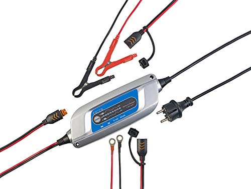 Caricabatteria da auto compreso cavo di ricarica con terminali a poli Cavo di ricarica con pattini ad anello e istruzioni in tedesco. Dispositivo di ritenzione della carica - Anche rilevante o appropriato per: Macchina pacco batteria Caricabatterie, Carica di mantenimento, Protezione della batteria, Tester per batterie, Inizia subito, Voltmetro, motociclo, automobile, barca, 12V