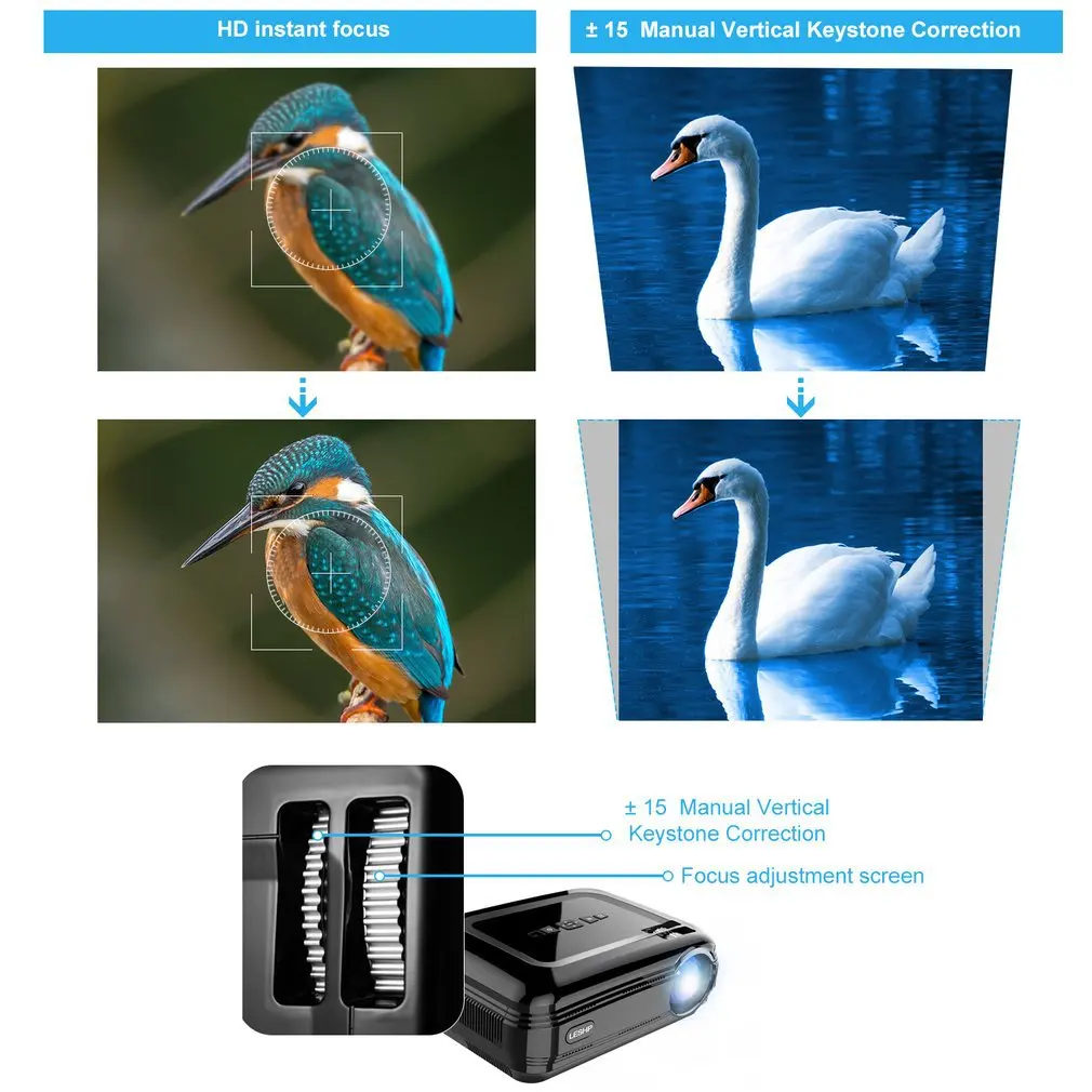 LESHP 720P LCD Projector High Resolution High Braightness 3200 LM Multimedia Home Cinema Theater HDMI VGA USB for Laptop TV
