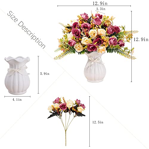 CONFEZIONE: Vaso con rose artificiali combinate. (Compreso: 4 mazzi di rose, 1 ramo di piante verdi, 1 vaso in ceramica)