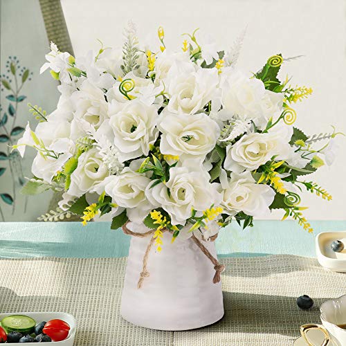 LESING Fiori Artificiali 3 Mazzi di Gardenia in Seta Artificiali con Vaso in Ceramica Bouquet Decorativo, Mazzi di Fiori Finti, Festa Nuziale, Decorazione Casa(Bianco)
