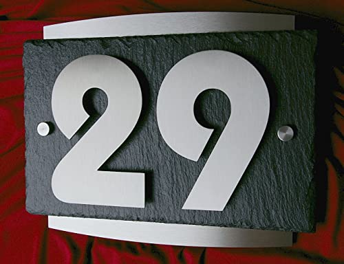 Leskow Metalldesign Numero civico 3D in acciaio inox e ardesia, targa per porta