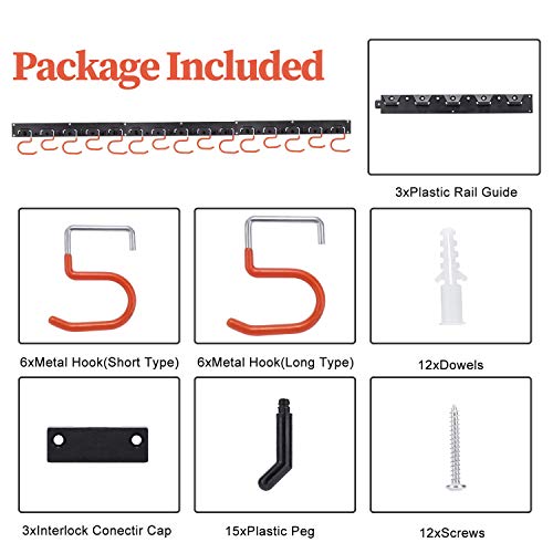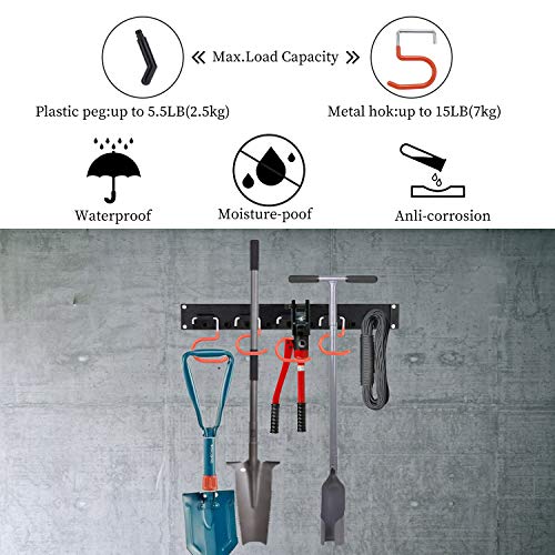 LESOLEIL Sistema di Stoccaggio Attrezzi Regolabile - Supporto da Parete di archiviazione con 3 guide 12 ganci per Attrezzi Organizer da Giardino/Garage