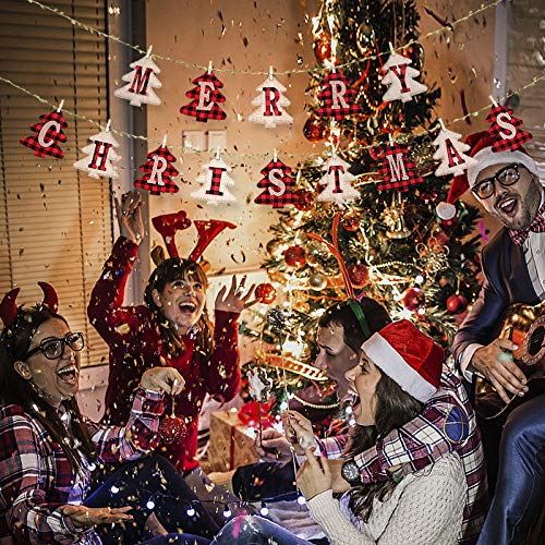 LessMo Buon Natale Banner, Stendardo Natalizio a Forma di Pino in Tela Scozzese Decorazione per Caminetto a Parete, Ideale per la Decorazione Domestica di Natale