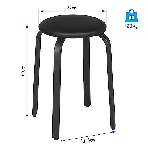 Lestarain 4x Sedie per Sala da Pranzo Impilabili, Sedie da Cucina in Metallo con Seduta Imbottita e Rivestita in PU, Sgabelli da Trucco, Soggiorno, Camera da letto, Nero, LCNI116002-4