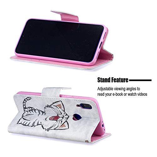 Leton-IT Cover Xiaomi Redmi Note 7 Libro, Custodia in Pelle Portafoglio per Xiaomi Redmi Note 7, Cover Bianco Magnetica con Stand in Simil Pelle Ultra Sottile Protezione Bumperz Gatto
