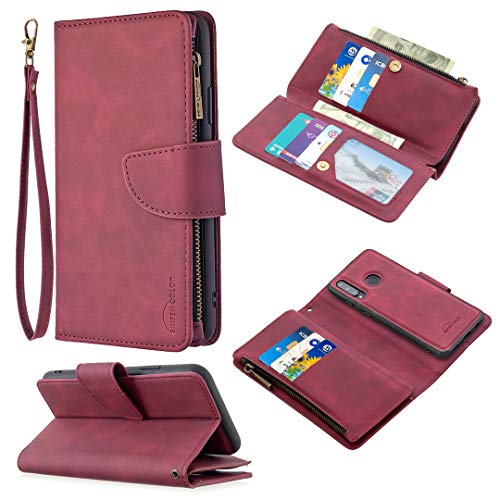 Funzione - supporta la ricarica wireless, la custodia per telefono a portafoglio ha due funzioni di portafoglio e custodia per telefono, può assorbire con successo gli impatti e resistere ai danni causati da cadute accidentali. con 6 scomparti per carte, 1 tasca per portafoglio con cerniera e una cover posteriore magnetica in una