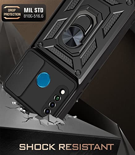 Leton-US Cover per Huawei P30 Lite con Anello [3X Vetro Temperato] Custodia Huawei P30 Lite con Copertura Camera Scorrevole, [Protezione Fotocamera] PC Slicone Case Verde