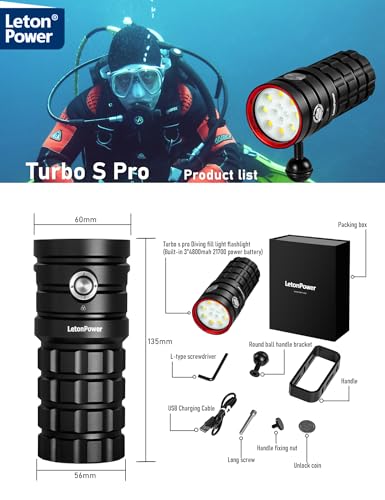 LetonPower Torcia subacquea, TS S Pro 13000Lumens torcia subacquea professionale,120m torcia sub, torcia video subacquea,con ricarica Type-C per gli sport subacquei professionali all'aperto