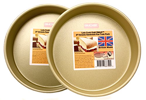 Lets Cook 20,3 cm profonda Victoria sandwich padelle, teglie da torta, Twin Pack, base fissa, 20 cm, realizzato in Inghilterra con oro glidex antiaderente TM