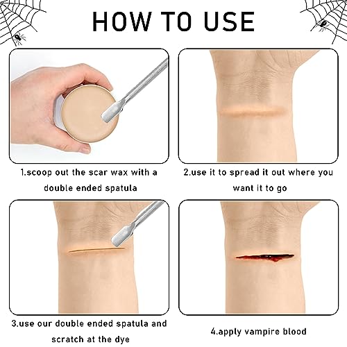 【Set Combinato per Halloween】 Riceverete 1 sangue coagulato 44g, cera per cicatrici 37g e 1 spatola, perfetto per tutte le vostre esigenze.