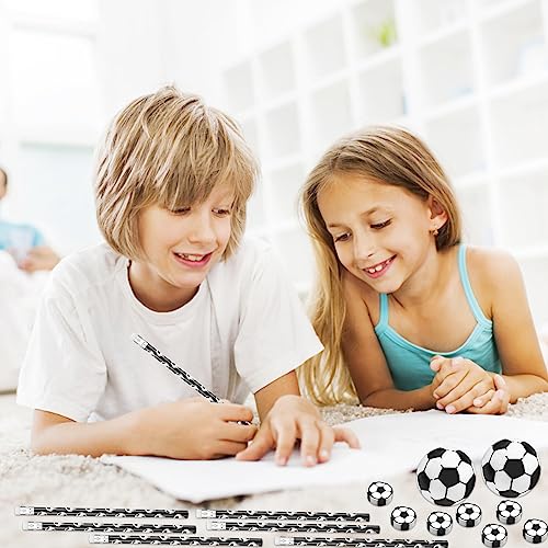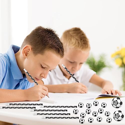 Lets Joy 12 Pezzi Matite da Calcio, 12 Pezzi Matite con Gomma da Calcio, 2 Pezzi Temperamatite da Calcio, Set di Cancelleria a Tema Calcio, Matite a Tema Calcio, Feste Regalo (A)