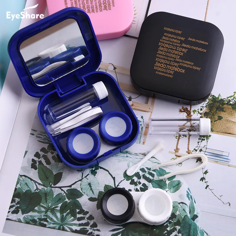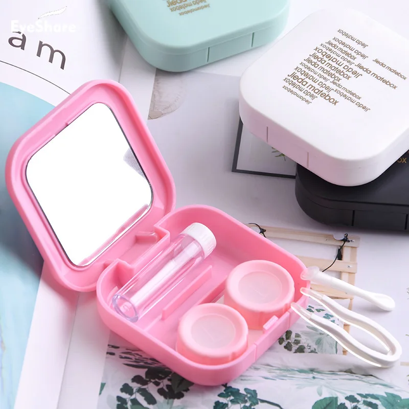 Letter Design Lens Case with Stick Mirror Set Contact Lens Partner Container Storage Holder