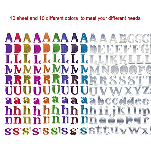 Letter Stickers Adesivi Lettere Alfabeto Colorate Autoadesivi Stickers Glitter Adatte per Decorare Diario delle Vacanze/Album Fotografici/Scrapbooking/Decorazione Interni (10 colori)
