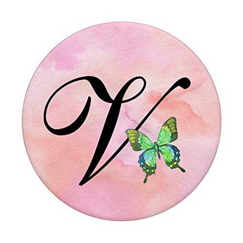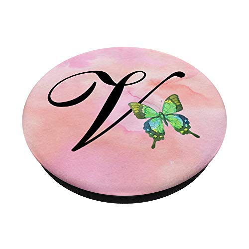 Lettera "V" iniziale Monogramma con farfalla PopSockets Supporto e Impugnatura per Smartphone e Tablet