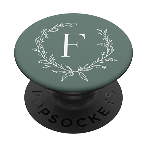Lettera maiuscola verde salvia F Monogramma iniziale F PopSockets PopGrip Intercambiabile