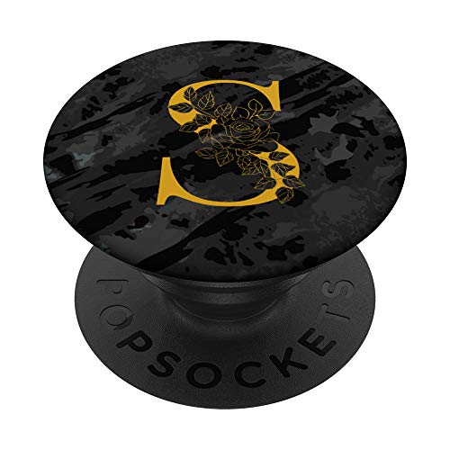 Lettera Monogramma S Nero PopSockets PopGrip: Impugnatura per Telefoni Cellulari e Tablet Intercambiabile