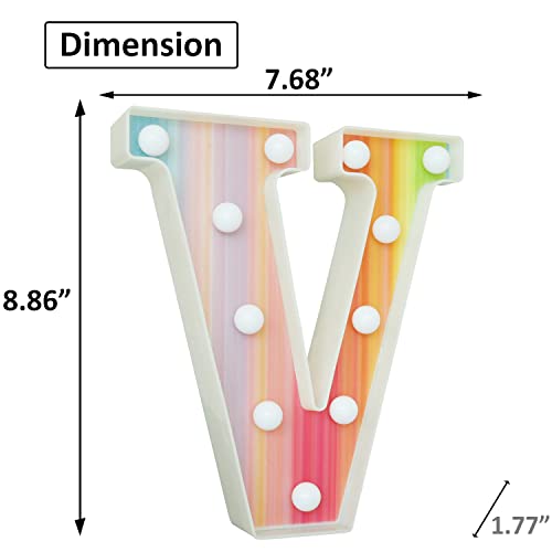 Lettere illuminate arcobaleno, luci colorate a LED, 16 colori che cambiano segno dell'alfabeto, regali per ragazze, donne, feste, compleanni, feste a distanza di notte, decorazione da parete,V