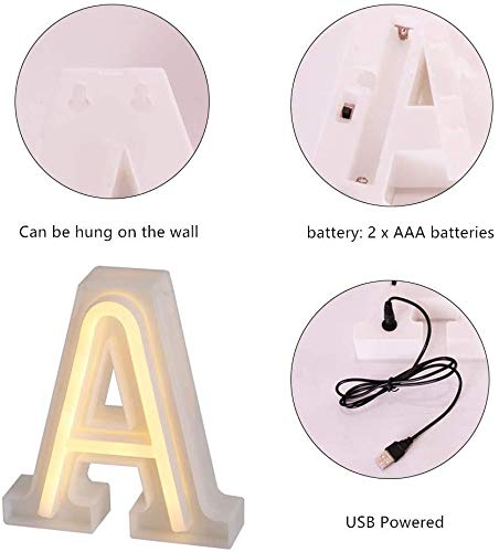 Lettere Luminose Lnsegne Al Neon, Luce Notturna Al Neon a LED, Marquee Lettere Luci Decorazione Da Parete Per Natale Ffesta Di Compleanno Bar San Valentino Parole-lettere bianche calde (A)