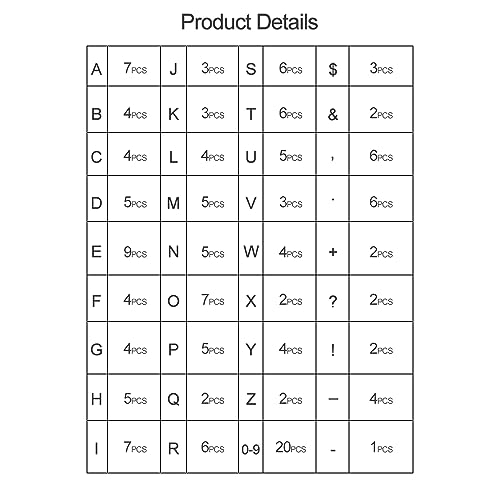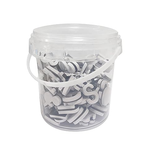 Confezione: una confezione include 121 lettere maiuscole, 20 numeri (due set da 0-9 ciascuno), 19 simboli e un secchio di plastica