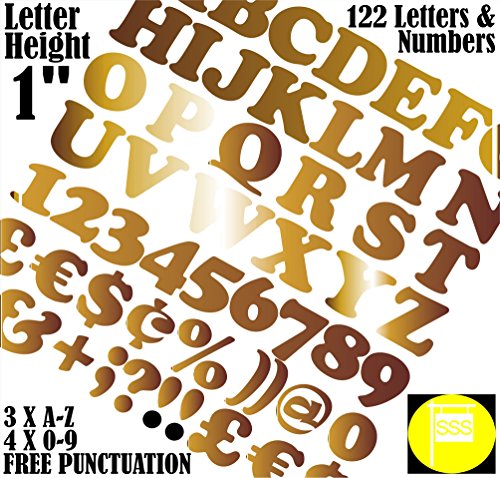 Lettere e numeri confezione da 122 pezzi x 2,5 cm autoadesivi = Font Cooper adesivi gratis punteggiatura lavabile grande insegna per scrivere a prova di acqua qualsiasi progetto (oro)