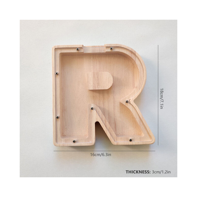 26 lettere salvadanaio moneta di legno salvadanaio barattolo monete scatola di immagazzinaggio ornamento Desktop decorazione della casa artigianato per i bambini,R