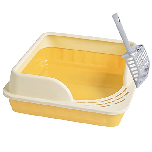 Lettiera per gatti, allargata, a prova di perdite, con filtro aperto sulla parte superiore - Lettiera piatta da viaggio con paletta per gattini, gatti anziani Smashing