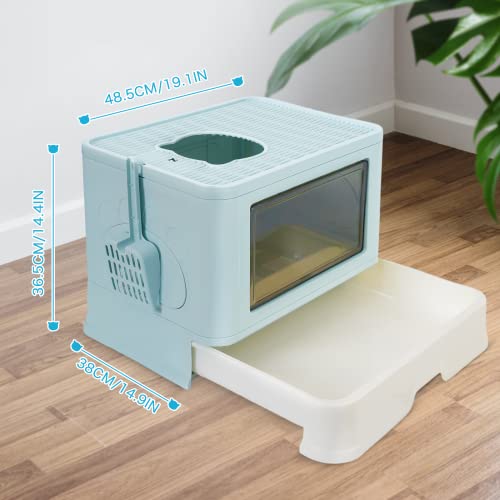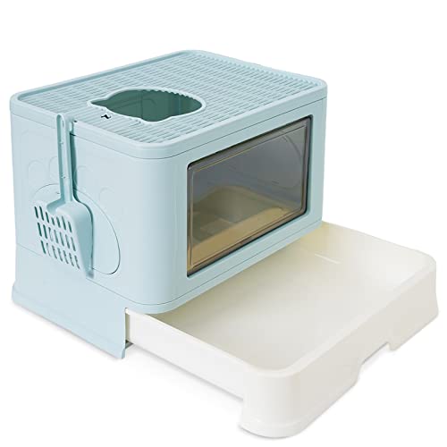 Lettiera per Gatti Chiusa con Paletta Inclusa, Cassetto, lettiera per gatti pieghevole, facile da pulire e di grande capacità (blu)