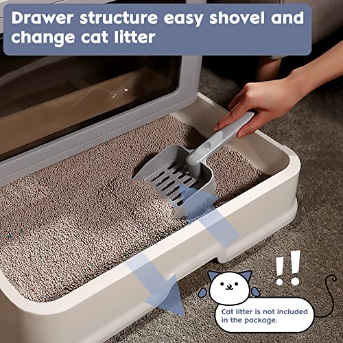 Lettiera per gatti chiusa, pieghevole, con spazzola in pelliccia, cassetto, lettiera per gatti, facile da pulire e grande capacità
