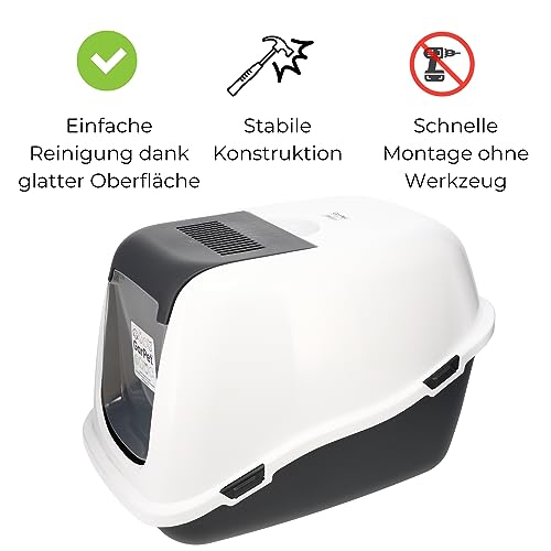 Lettiera per gatti con coperchio, filtro ai carboni attivi, cappa inclinabile, guscio inferiore extra alto, grande, XXL, 60 gatti