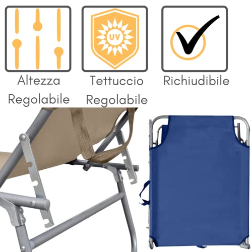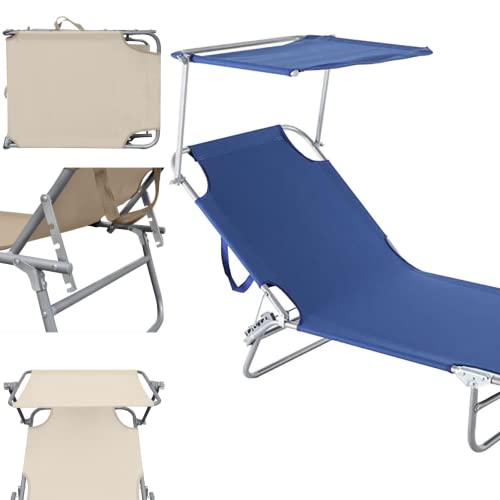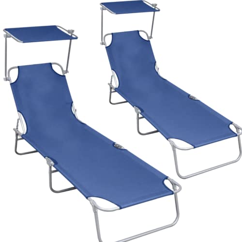 ZIK Set 2 Lettini Prendisole Pieghevoli da Giardino, in Acciaio, con Tettuccio Parasole e Schienale Regolabile - 188x55x25 cm (Blue)