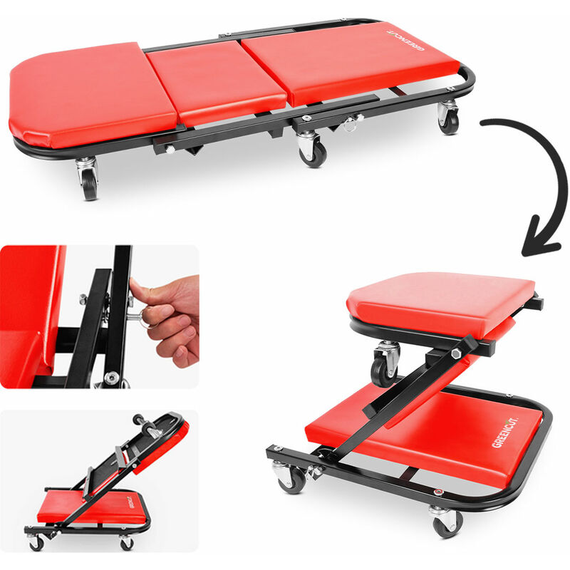La barella da officina meccanica convertibile in sedile sarà il tuo migliore alleato quando fai lavori meccanici. Oltre ad essere un comodo strumento per lavorare sdraiati, l'MFA360 può essere convertito in un sedile da officina in pochi passi, rendendolo un prodotto versatile per lavorare a diverse altezze. Con un ampio telaio fino a 92 cm di lunghezza, un comodo poggiatesta e 6 ruote girevoli a 360°, l'MFA360 è ideale per l'uso in un'officina o per uso privato. Potrai godere di una grande libertà di movimento e di un facile accesso ai lavori che devono essere fatti a bassa quota. Grazie al suo robusto e solido telaio in acciaio, ha un'elevata capacità di carico: fino a 150 kg in modalità barella e 120 kg in modalità seduta. Accedere alla posizione bassa del telaio, cambiare una ruota di un'auto comodamente seduti... Con questa barella pieghevole flessibile non ci sarà lavoro che non potrete fare! Specifiche Misure: Dimensione della barella: 92 x 44 x 12cm Dimensione del sedile