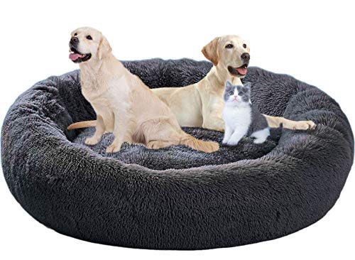 Letto per Cani Rotondo,Cuscino Gatti Letto Donut,Base Impermeabile Antiscivolo Lavabile cuccia per Cani e Gatti,cuccia cane morbida taglia grande,cucce per cani da interno (100cm,Grigio scuro)