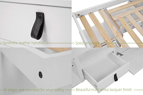 Letto a Cassetti Bali Alla Francese (140x190 cm) Bianco - Molto spazio di stoccaggio e cassetti, ideale per piccole stanze - Letto con contenitore in MDF laccato - Prezzo incl. rete a doghe